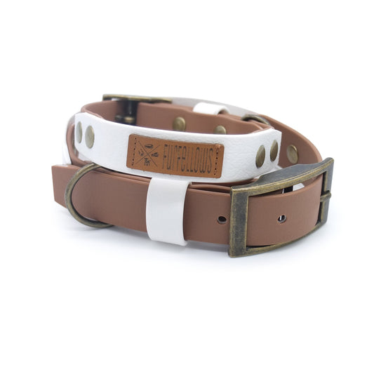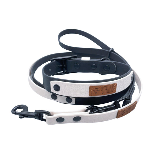 Set | Halsband & Hands-Free Leine aus Biothane Weiß & Braun