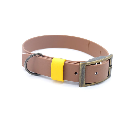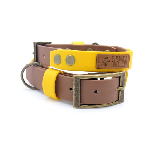 Set | Halsband & Hands-Free Leine aus Biothane Gelb & Braun