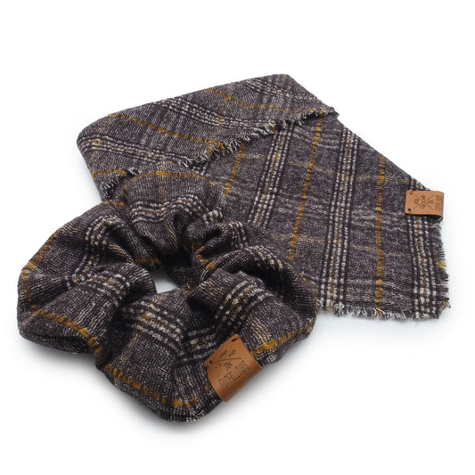 Setangebot Schal, Hundehalstuch & Headband in Braun & Gelb