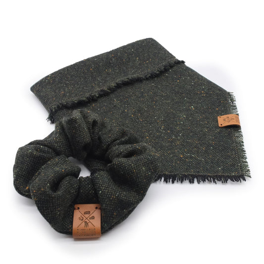 Setangebot Schal, Hundehalstuch & Scrunchie Grün meliert