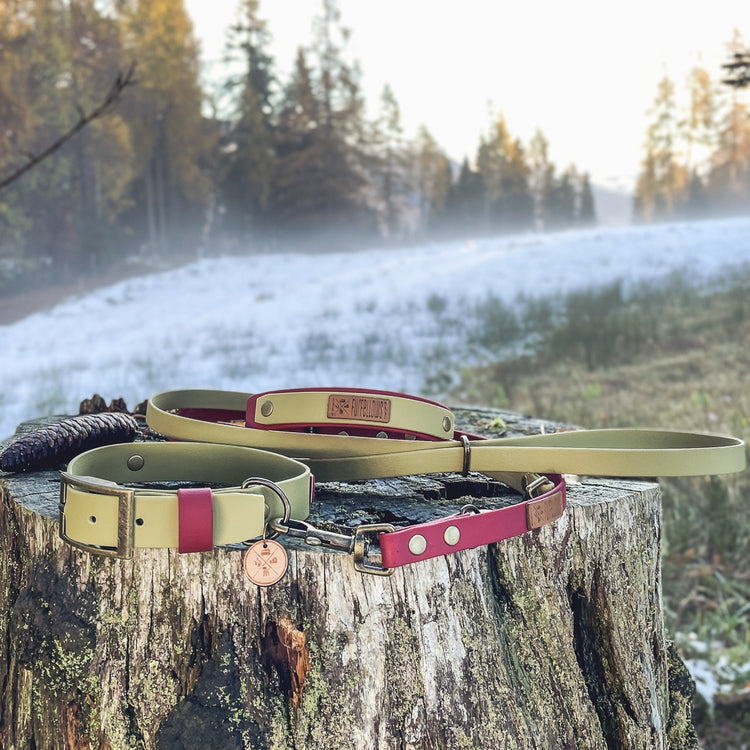 Set | Halsband & Hands-Free Leine "khaki" aus Biothane